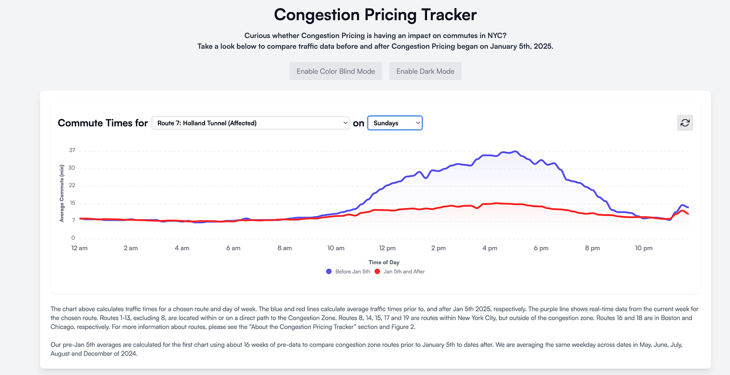 You can see the later starting Peak fee comes into effect just as the pre-cordon load (blue line) was starting to take off. Here again we see the MTA aligning the tariff to reflect changes in the inbound load.